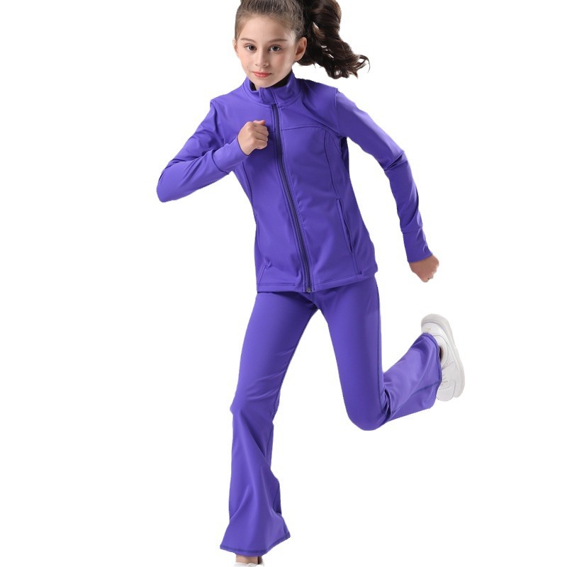 Autumn and winter European and American anti-ultraviolet breathable solid color children's yoga clothing suit running outdoor long sleeve coat women