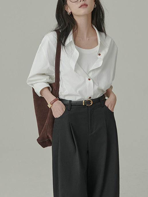 Non-ironing ~ shirt women's early spring jacket method lazy wind loose niche long sleeve Hong Kong flavor chic temperament white shirt